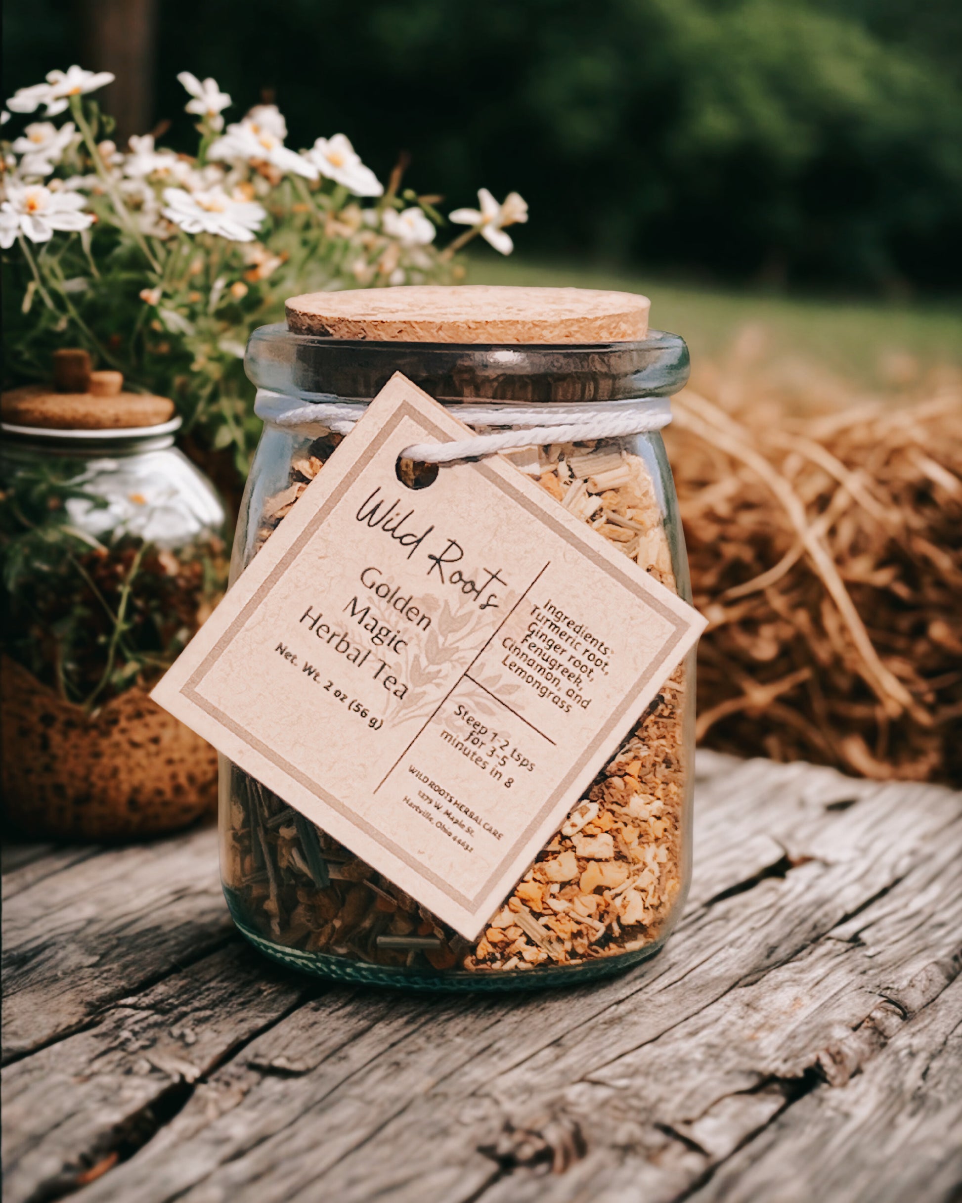 Ingredients: organic Tumeric, organic Ginger, organic Lemon Grass, organic Cinnamon, and organic Fenugreek